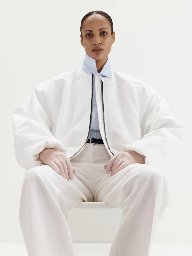 A stylish choice for those who value comfort and elegance in everyday life. Its relaxed silhouette ensures freedom of movement, while the beautifully designed collar adds a touch of charm. The back features a branded logo, highlighting the individuality of this piece.