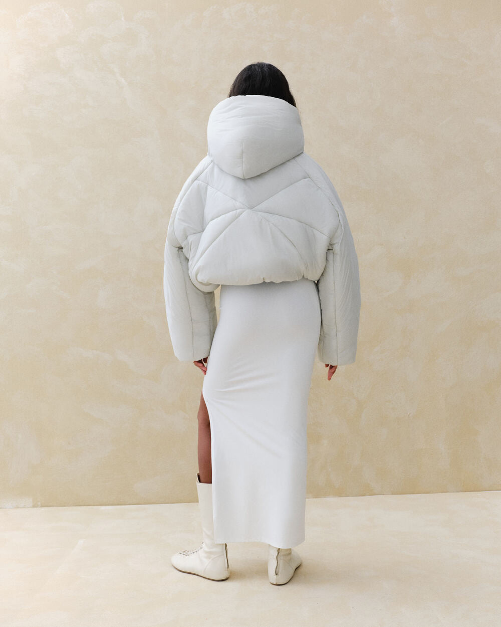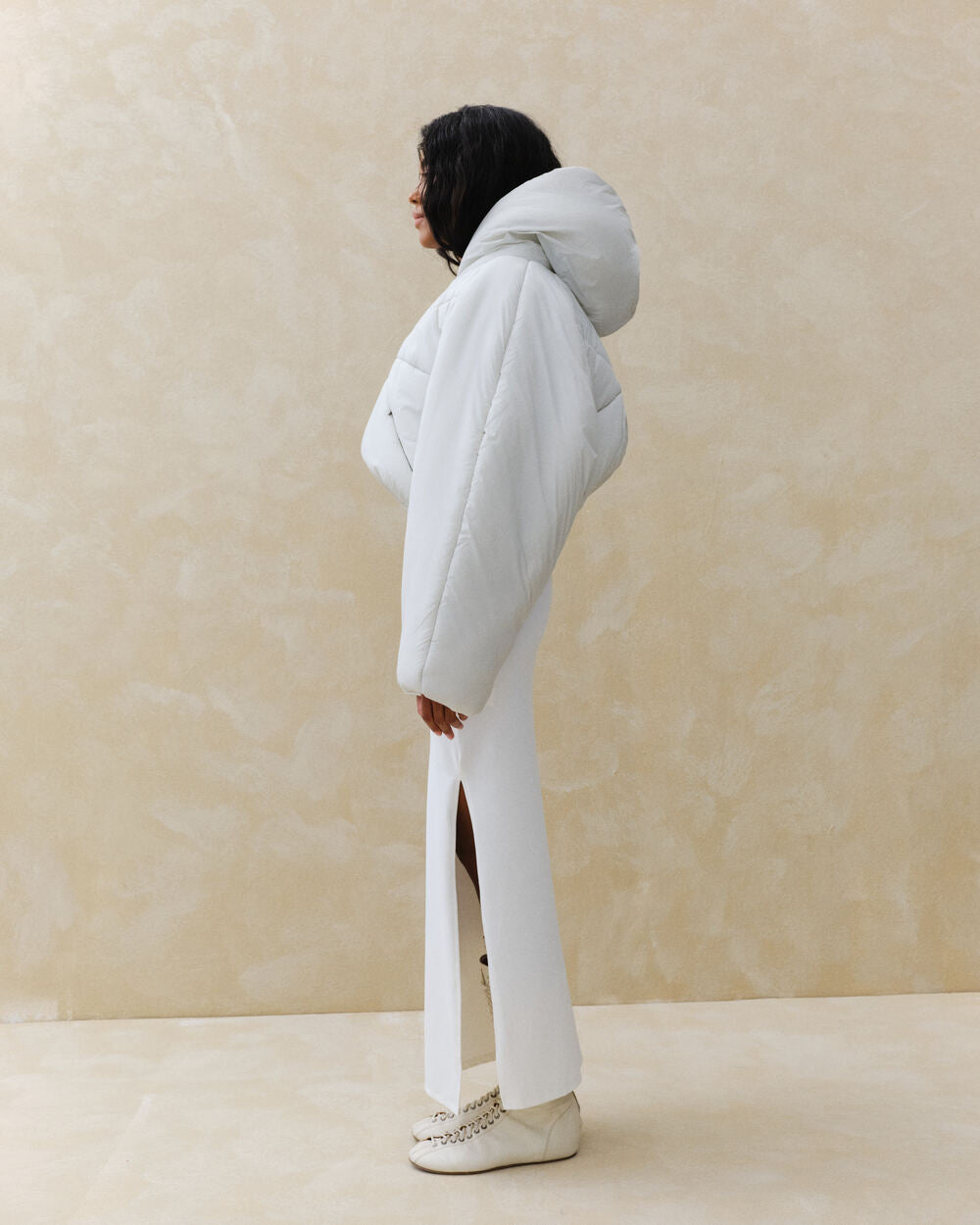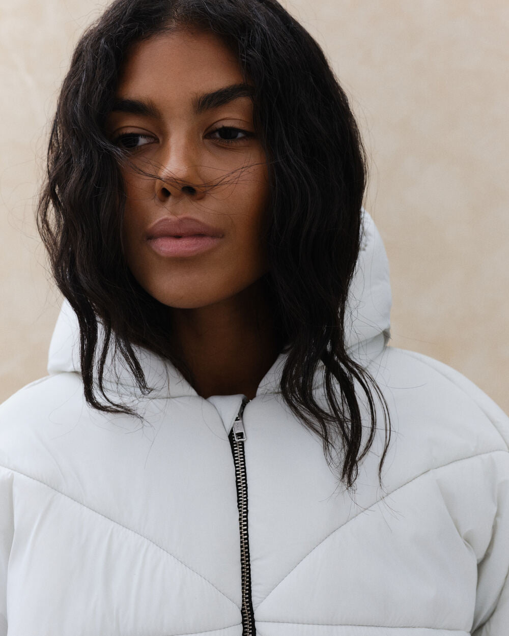 Soft on the inside, like a new home, it envelops you in warmth and coziness. Functional, with well-thought-out details and pockets, it’s suitable for any conditions. The color palette, inspired by natural shades of earth and stone — from warm sandy tones to deep grays and muted greens — is particularly striking. These colors add natural elegance and versatility to the jacket, easily integrating into any wardrobe and creating a stylish winter look.